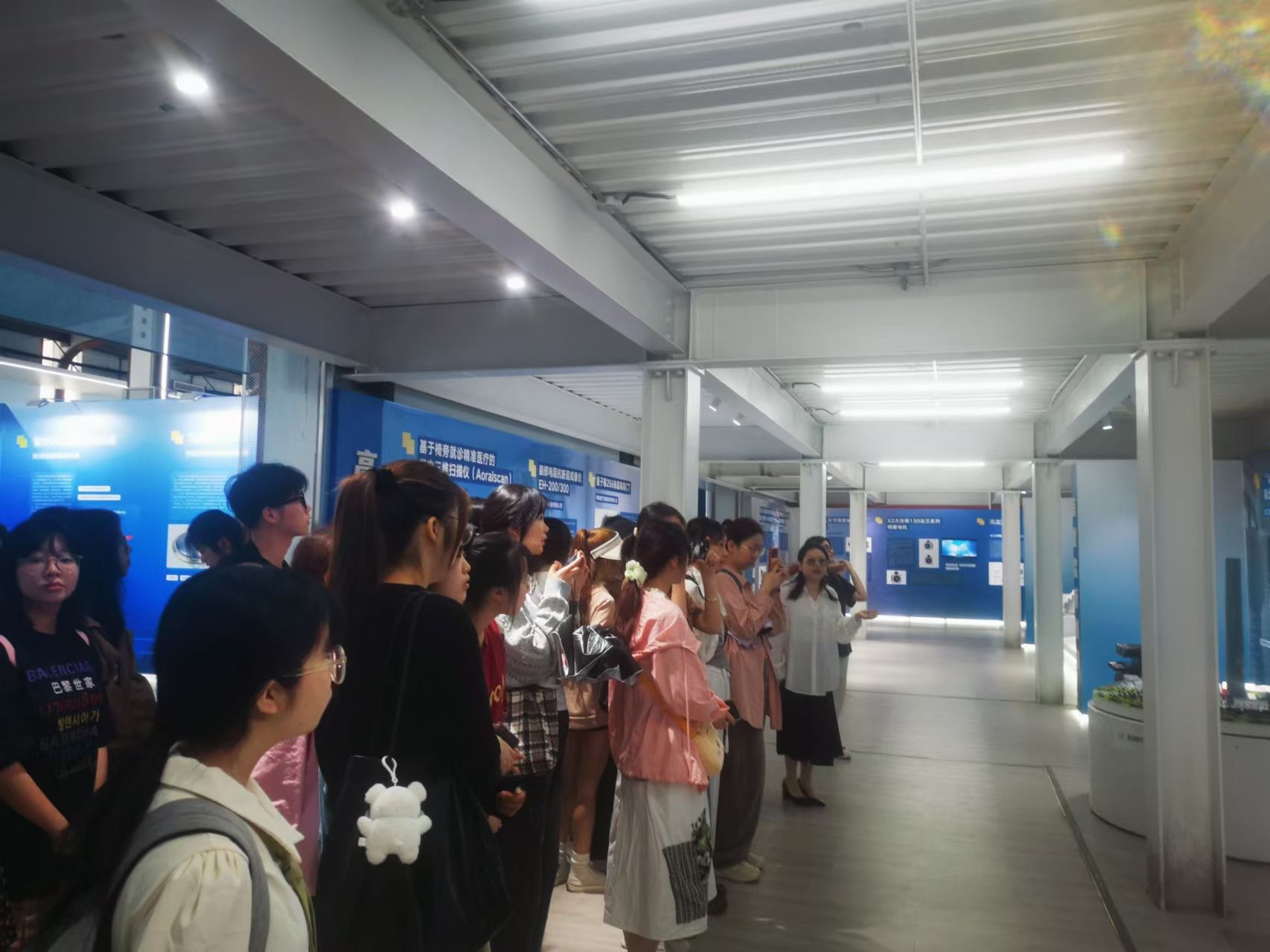 在白塔综合体工作人员的带领下,同学们参观了综合体4馆2区,近距离接触了现代能源装备、节能与新能源汽车、综合交通装备、医疗装备、智能专用装备、信息技术装备等10大板块的高精尖产品,对浙江省工业发展取得的斐然成就连连称赞。白塔综合体工作人员的细致讲解也让同学们更系统全面地了解到浙江省制造业高质量发展及政府公共服务平台建设的相关知识。
