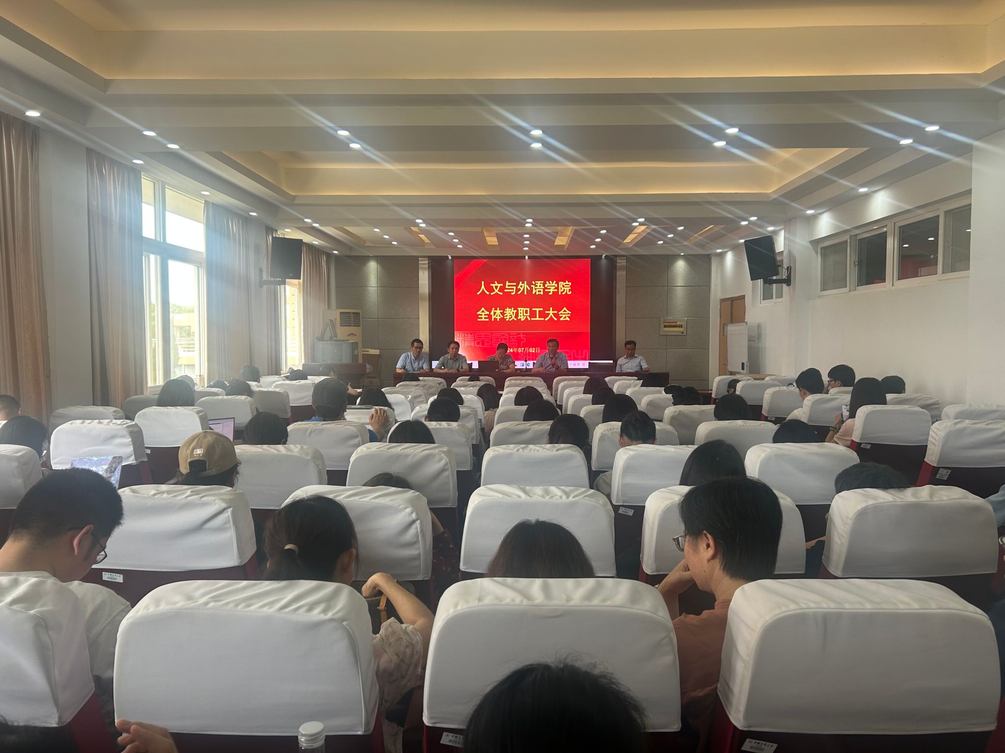 为总结上半年工作成效,做好暑期工作安排,人文与外语学院于7月2日在格致中楼307室召开全体教职工大会,学院领导班子及全体教职工参加会议,会议由学院党委书记赵蓓茁主持。