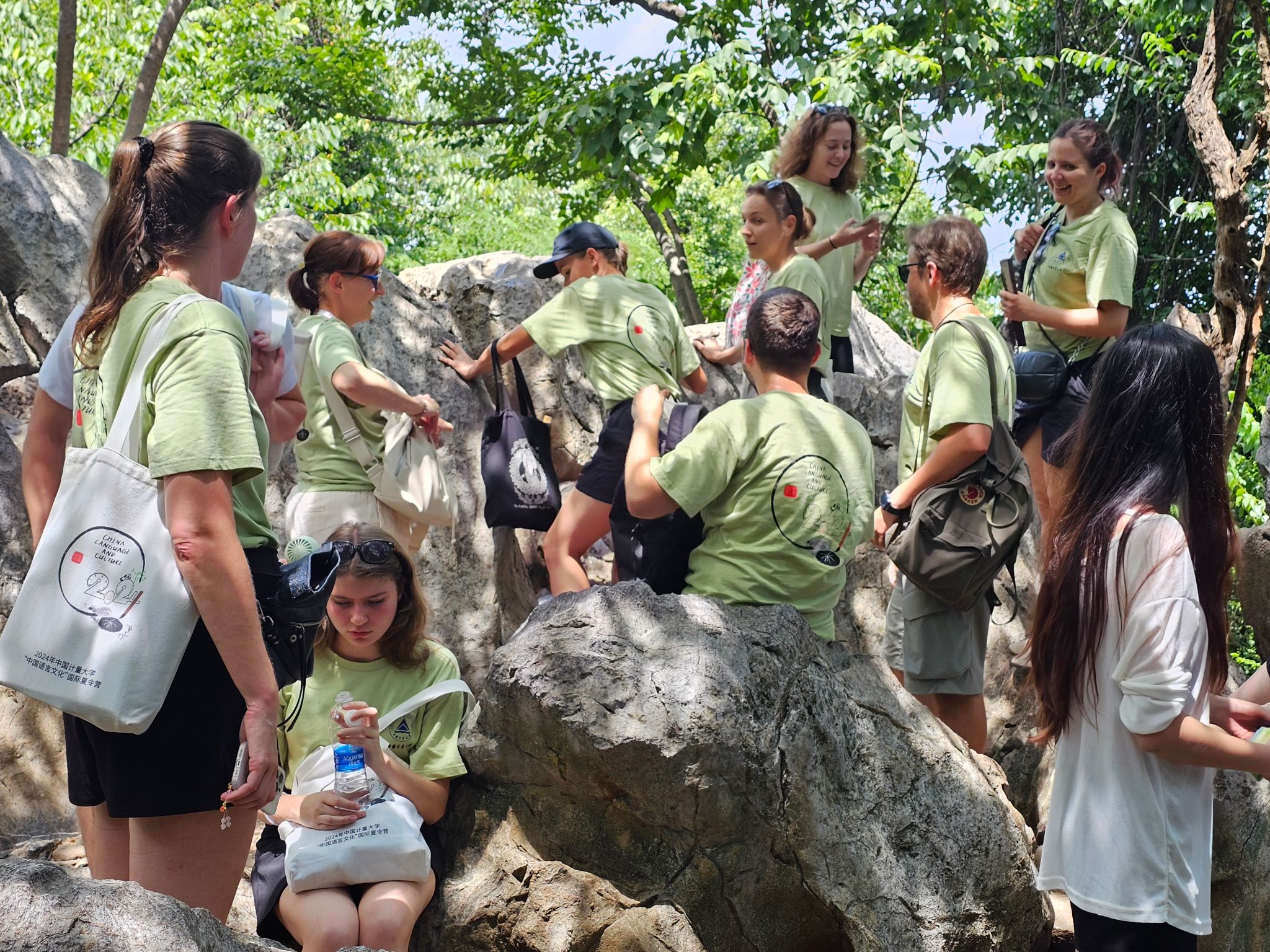 寺内考察结束后,大家前往飞来峰参观。飞来峰上老树古藤,盘根错节,岩骨暴露,峰棱如削,期间点缀着从五代至元代的三百多尊造像。大家被有静有动、各具姿态、神态各异的造像吸引,仔细辨析文字说明。盛夏的杭州,头上骄阳似火,洞中汩汩清凉,灵隐寺的建筑造像和历史人文,深深镌刻在夏令营学员的记忆深处。