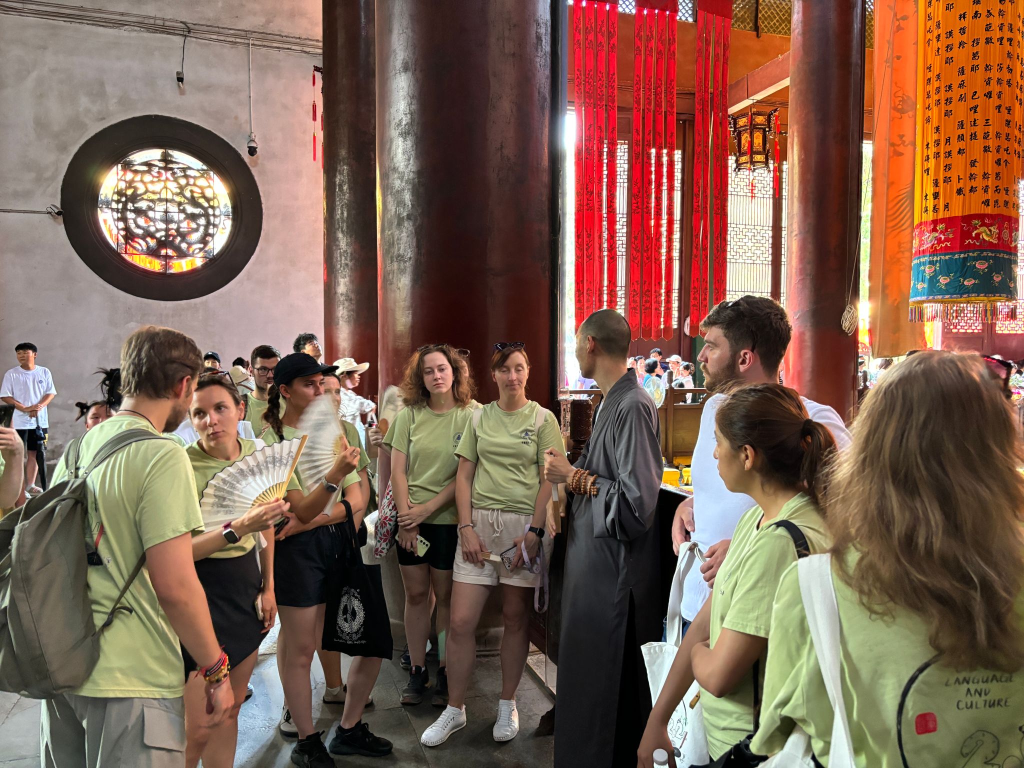 大家在彗仰法师的带领下参观了灵隐寺。彗仰法师全程用英语介绍了灵隐寺极具中国特色的佛教文化。