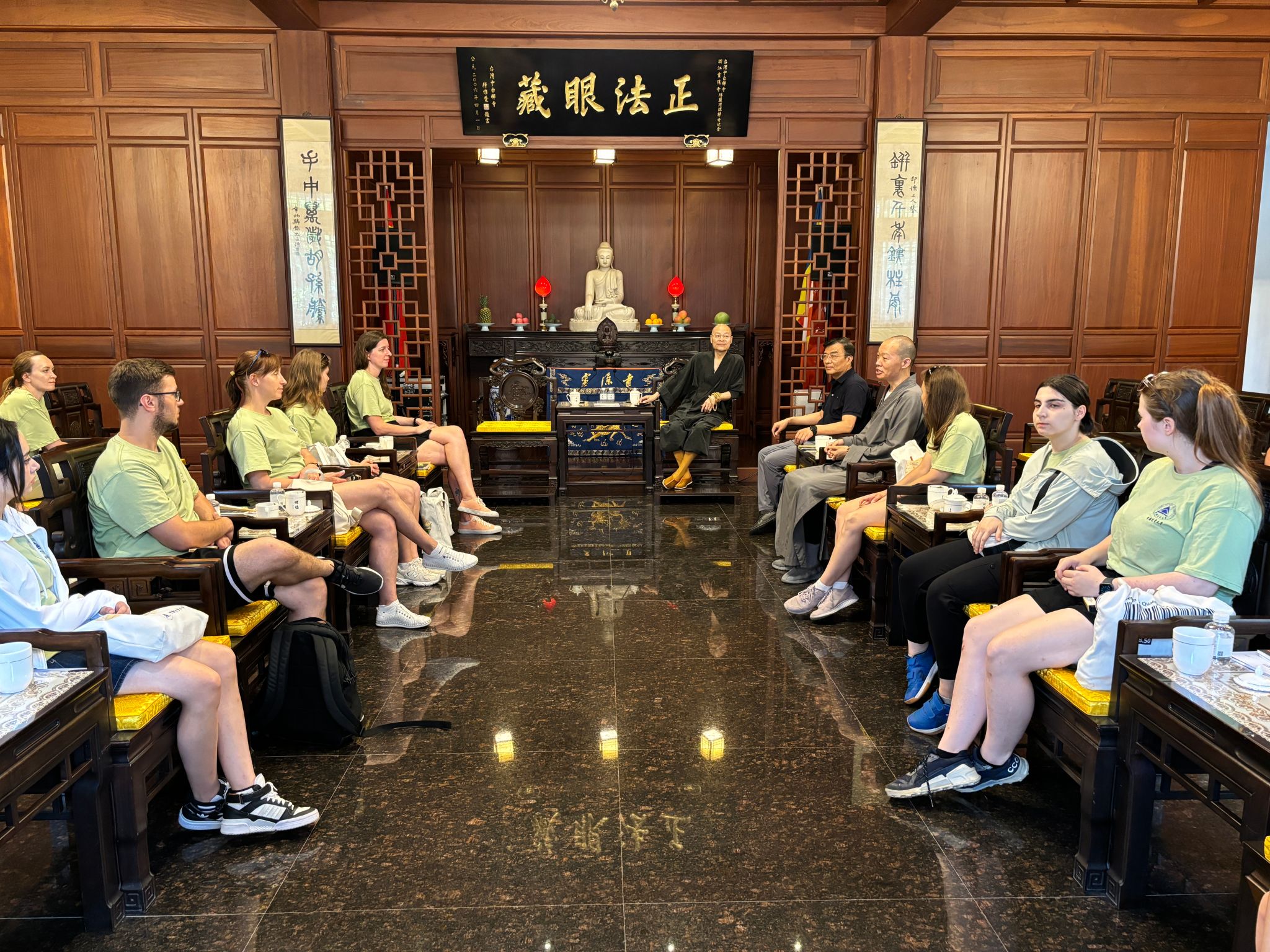 读万卷书,行万里路。除了汉语学习和文化活动,夏令营因地制宜组织文化考察项目。授课团队把本地丰富的历史人文积淀作为鲜活教材,把中文教学和文化讲座延伸到量大校园之外,走进世界文化遗产、博物馆、文化中心、文创园区和历史街区。学员们走苏堤,进岳庙,上宝石山,登雷锋塔,游花港观鱼,乘船观三潭映月,穿过雾气弥漫的九溪烟树,行走在碧绿的龙井茶田,攀登十里琅珰蜿蜒的石阶,在城市阳台的霓虹灯下眺望波光粼粼的钱塘江,漫步武康大楼、上海中心和外滩,感受万国建筑博览群的历史风情。大家赴灵隐寺聆听光泉大和尚和彗仰法师关于中国传统佛教文化的讲座,在之江文化中心梳理浙江历史流脉,在中国丝绸博物馆感受丝绸的历史文化及“一带一路”倡议的全球影响力,在大运河博物馆阅读大运河与杭州城历代变迁的故事,在南宋御街寻找“钱塘自古繁华”的市民生活遗存。