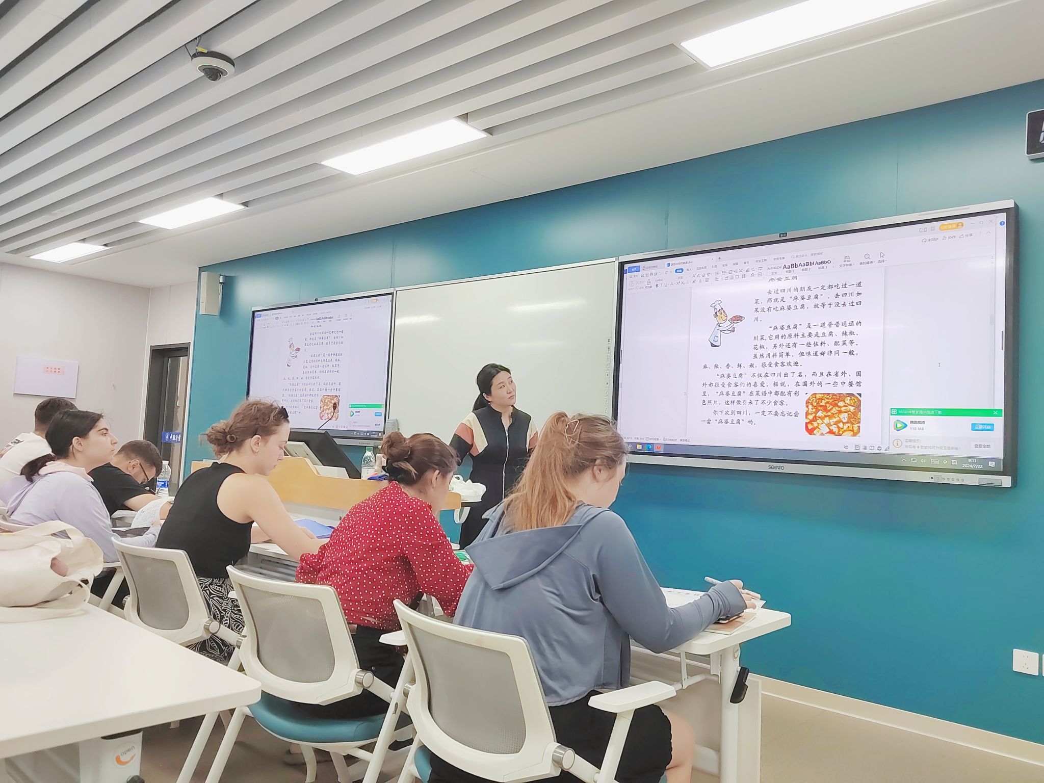 本期夏令营学员的年龄、职业、汉语水平都不同。他们中有在读本科生,也有硕士生、博士生,还有律师或工程师,有的汉语零基础,有的通过了HSK三级和四级考试。但他们都有一个共同的目标:来中国全沉浸式的学习汉语,亲身体验中华文化。为此,主办方首先为学员们量身定做了初级、中级和高级综合汉语授课计划,其次辅以中国传统文化实操活动,然后穿插历史文化考察项目。教学团队实施分组教学和一对一汉语训练,致力于提高学员的汉语听说读写综合能力。张璐老师的初级汉语以对话为重点,聚焦时间、空间、服饰、颜色、价格等初级语法、语汇和会话;沈奕老师的中级汉语教学以生活场景为载体,聚焦旅游文化、饮食文化、杭州历史的进阶语汇表达和书写练习;徐婕老师的高阶汉语教学以现代经典语篇为单位,重点关注学习、工作、生活中的精微表达,突出中国传统民俗、节日、社交等高阶语料的输入和输出。