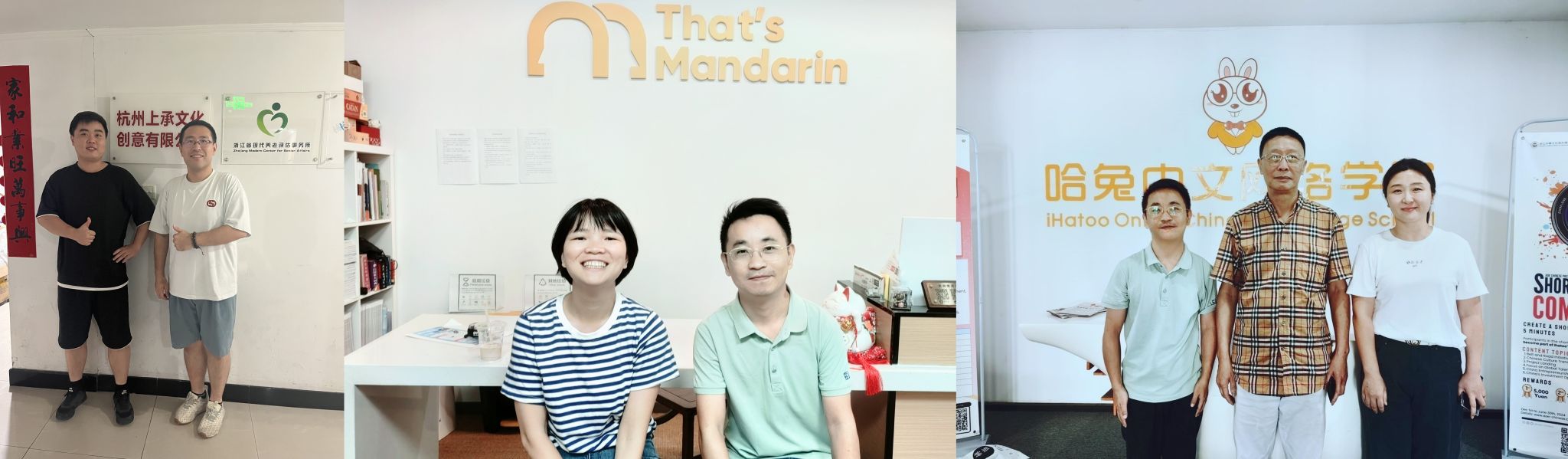 此外,中文系副主任黄成蔚于8月7日走访了杭州上承文化创意有限公司;国际文化传播系专业负责人彭飞、教师徐婕于8月8日走访了杭州湖伴汉语言文化有限公司,8月16日走访了哈兔中文网络学院;公共事务系主任霍荣棉于7月22日走访了杭州亿谦服饰有限公司,8月11日走访了杭州江南布衣有限公司;公共事务系副主任吴丽于8月16日先后走访了杭州市新创服务中心、杭州万南科技有限公司。