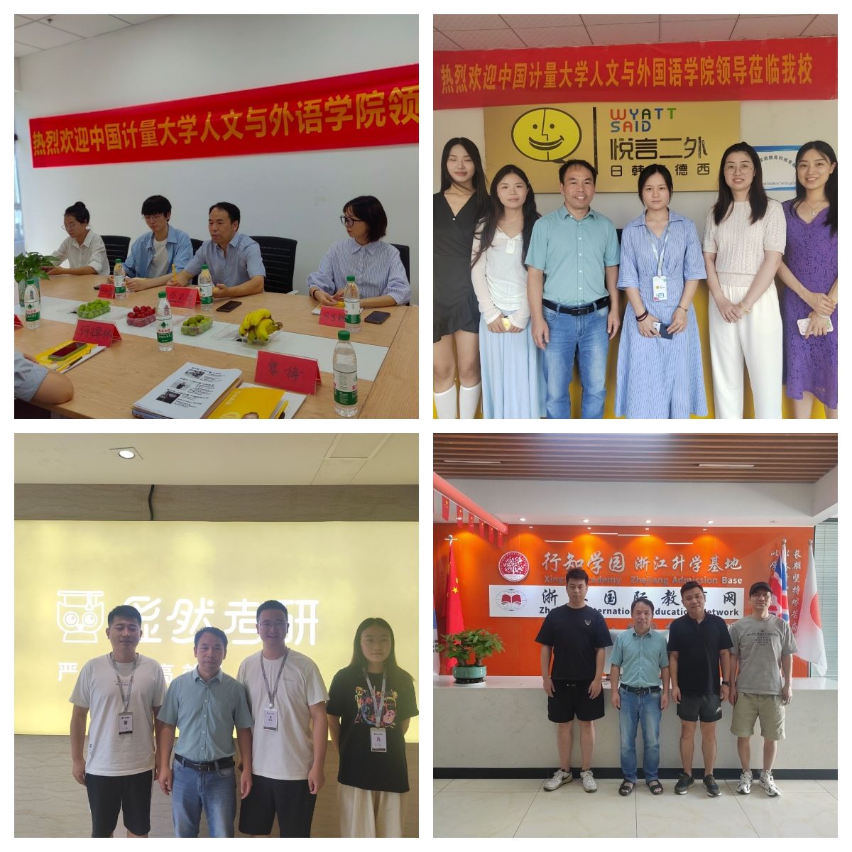 金民华于8月2日走访了洋光语众(杭州)教育科技有限公司,8月3日走访了杭州悦言教育科技有限公司、杭州劲风教育科技有限公司、杭州汉江教育科技有限公司。金民华先后向几家公司方介绍了人文与外语学院发展历史、专业设置、人才培养等情况,希望今后能在学生学科竞赛、实习就业等方面探索更多合作途径和合作内容。四家公司负责人均表示,希望与学院开展深入合作,从而促进双方的发展。