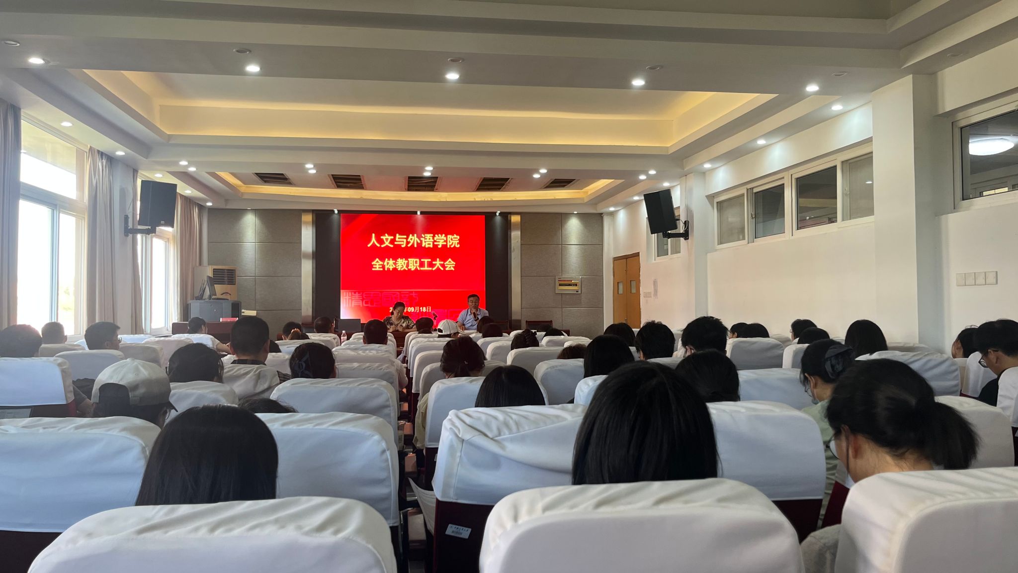 9月18日下午,人文与外语学院在格中307会议室召开新学期全体教职工大会,学院领导班子及全体教职工参会。会议由学院党委书记赵蓓茁主持。