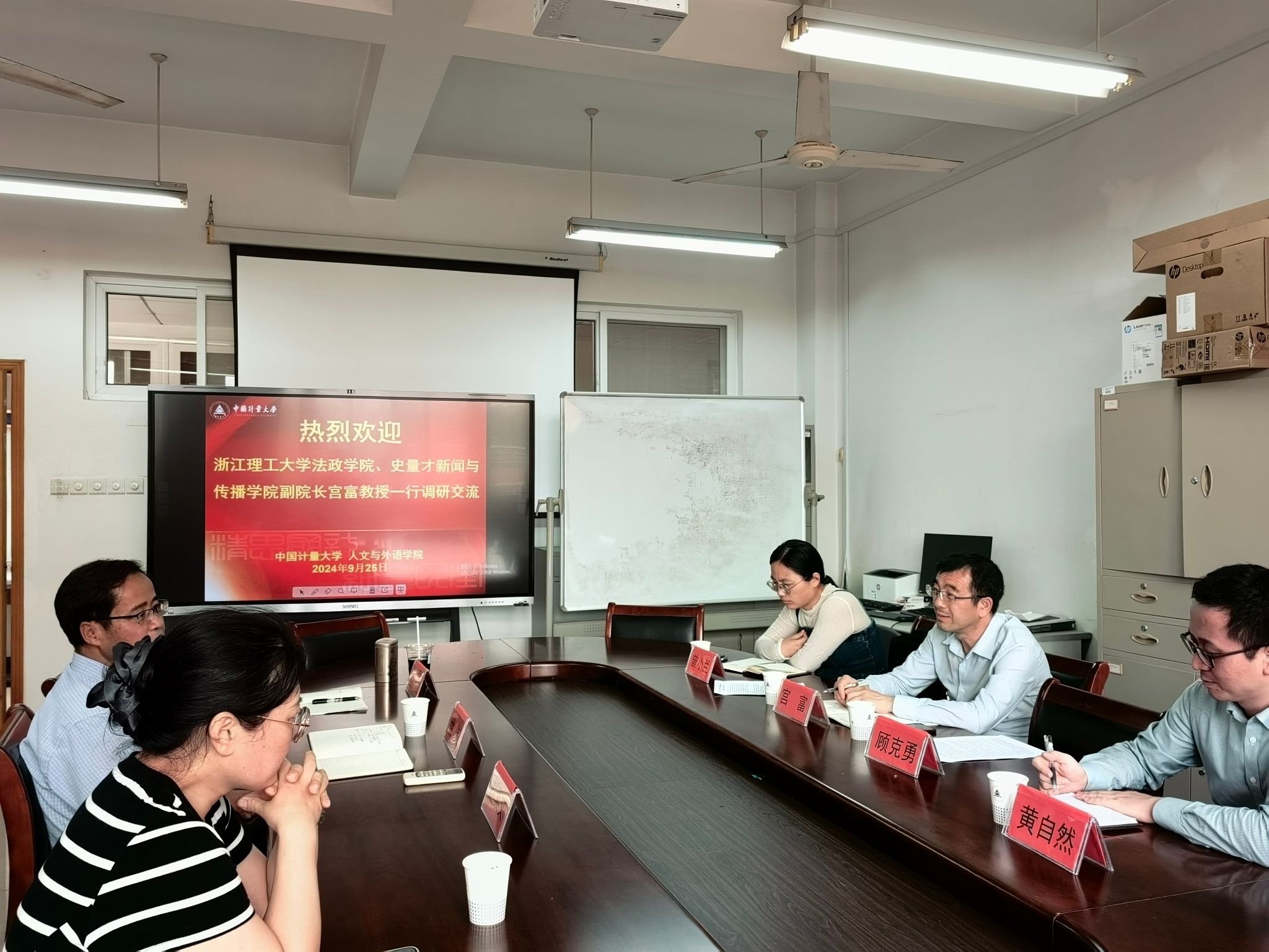 9月25日,浙江理工大学法政学院、史量才新闻与传播学院副院长宫富教授一行来访我校人文与外语学院,开展合作交流。下午,双方在格致中楼324召开座谈会,就国际中文教育硕士和汉语言文学专业学生培养问题进行了深入交流。学院副院长姚岚出席会议,国际中文教育专业刘美兰教授、彭飞副教授和汉语言文学专业赵素文副教授等参会。