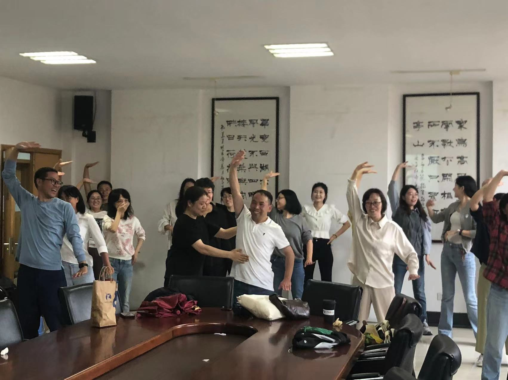 为培养人外教师对国术的兴趣,丰富教师的业余生活,提升各位教师的身体素质。人文与外语学院工会结合广大教工的作息时间、课程安排等因素,利用工作日午休组织开展国术健身周活动。活动围绕强体健身、爱我中华的主题,开展八段锦锻炼活动,通过在家勤练、在校团练等灵活的方式,提升各位老师的学习热情。人外工会还邀请到体军部武术套路六段孙若海老师,为各位教工示范、讲解、纠正八段锦动作。整个活动寓教于乐,轻松愉快,给我院教师留下了深刻的印象。