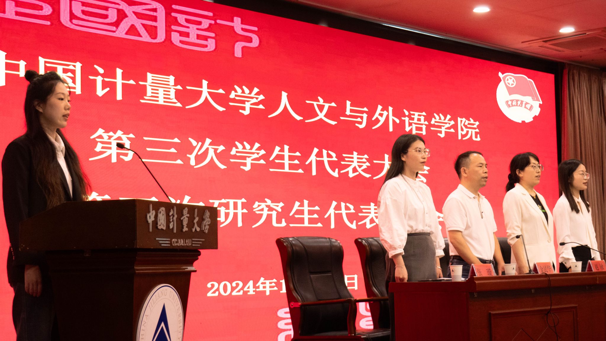 2024年10月18日,人文与外语学院第三次学生代表大会、第三次研究生代表大会在闻厅二楼报告厅顺利举行。人文与外语学院党委副书记金民华、团委书记赵敏、团委副书记张璇、研究生工作负责老师李豪敏以及107名代表出席了本次大会。