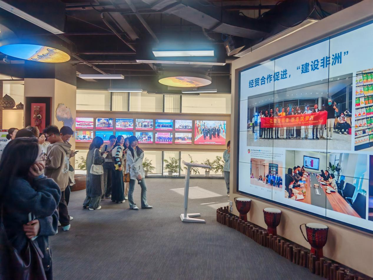 在浙非服务中心工作人员的带领下,同学们跟随工作人员的引导,认真倾听现场专业人员的细致讲解,系统了解了浙非服务中心在文化交流、信息互联、人才培育和经贸服务等方面提供的各项服务,对中非一站式服务平台的整体定位、布局管理、公共服务及发展现状有了较全面的认识。