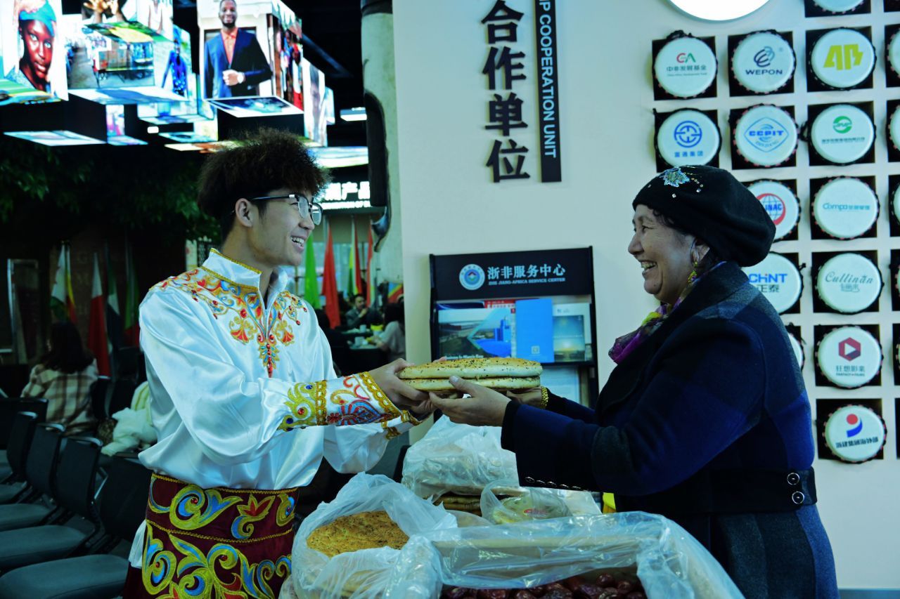 “创业引领未来,创业成就梦想”,节目表演结束之后,创业导师们开始倾囊相授创业经验,我校多民族学生们仔细聆听,认真学习。此外,学生还积极体验非遗文化活动。浙江省级非遗蓝印花布印染技艺传承人朱红芳老师在现场为我校学生讲解扎染的工艺并亲自示范如何扎染,“卷上绞”晕色丰富,变化自然,趣味无穷。
