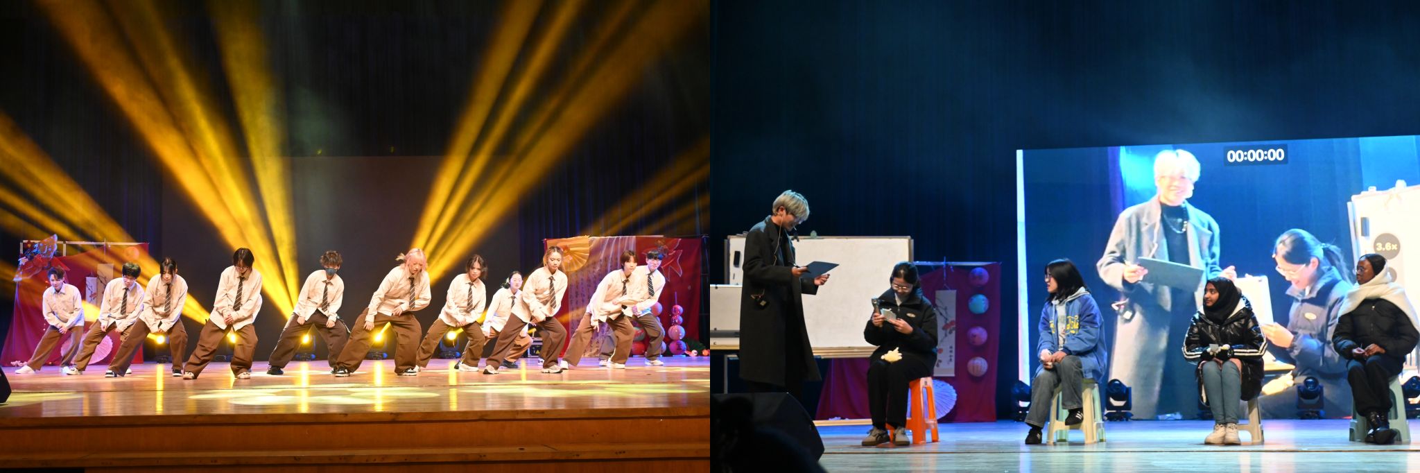 随后,晚会在国风水墨人屏互动舞蹈中,拉开帷幕。古韵乐府民乐社演奏的《九九八十一》融合了西洋乐器的奔放自由和中国乐器的婉转含蓄,在文化的交流碰撞之间,撷取音乐之树上灿烂的诗篇;21外语1班余子羚同学表演的古典舞《家书》展现了中华传统舞蹈的翩若惊鸿、宛若游龙;念初配音社带来的配音串烧,用大家熟悉的影视片段展现了大学生的青春洋溢;sky音乐社的表演曲目《如果爱忘了》深情而感人,悠扬的歌声唱出了对曾经承诺和美好记忆的深刻眷恋。Star.T的《宝宝巴士》舞出了了大学生朝气蓬勃、激情澎湃的青春风采;人外学院艺术实践中心带来的歌舞节目《兰亭序》用温柔似水的歌声娓娓和曼妙的舞姿,演绎了中国传统文化亘古不变,隽永悠长的魅力;新生班主任的祝福MV迎来了现场一阵阵欢呼和掌声,作为24级新生入校时的指路人,他们的每一句深情话语传递着真挚祝福与无限期望,给24级学生送来了冬日里的暖心惊喜与感动;紫夜魔术社表演的《幸福》,用神奇的魔术向大家诠释了幸福的定义和美好的祝愿;22汉语言2班贾雨薇和22食品2班谢滨璠共同演绎的《奢香夫人》,用歌声唱出了维护民族团结和国家统一的气魄;人外团学组织的舞蹈《寄明月》,演出了对亲情的珍视与美好生活的向往;由十佳歌手带来的金曲串烧将晚会推向高潮,祝福新生珍惜大学时光,把握每一个机遇,勇敢地去尝试、去挑战,让青春不留遗憾。
