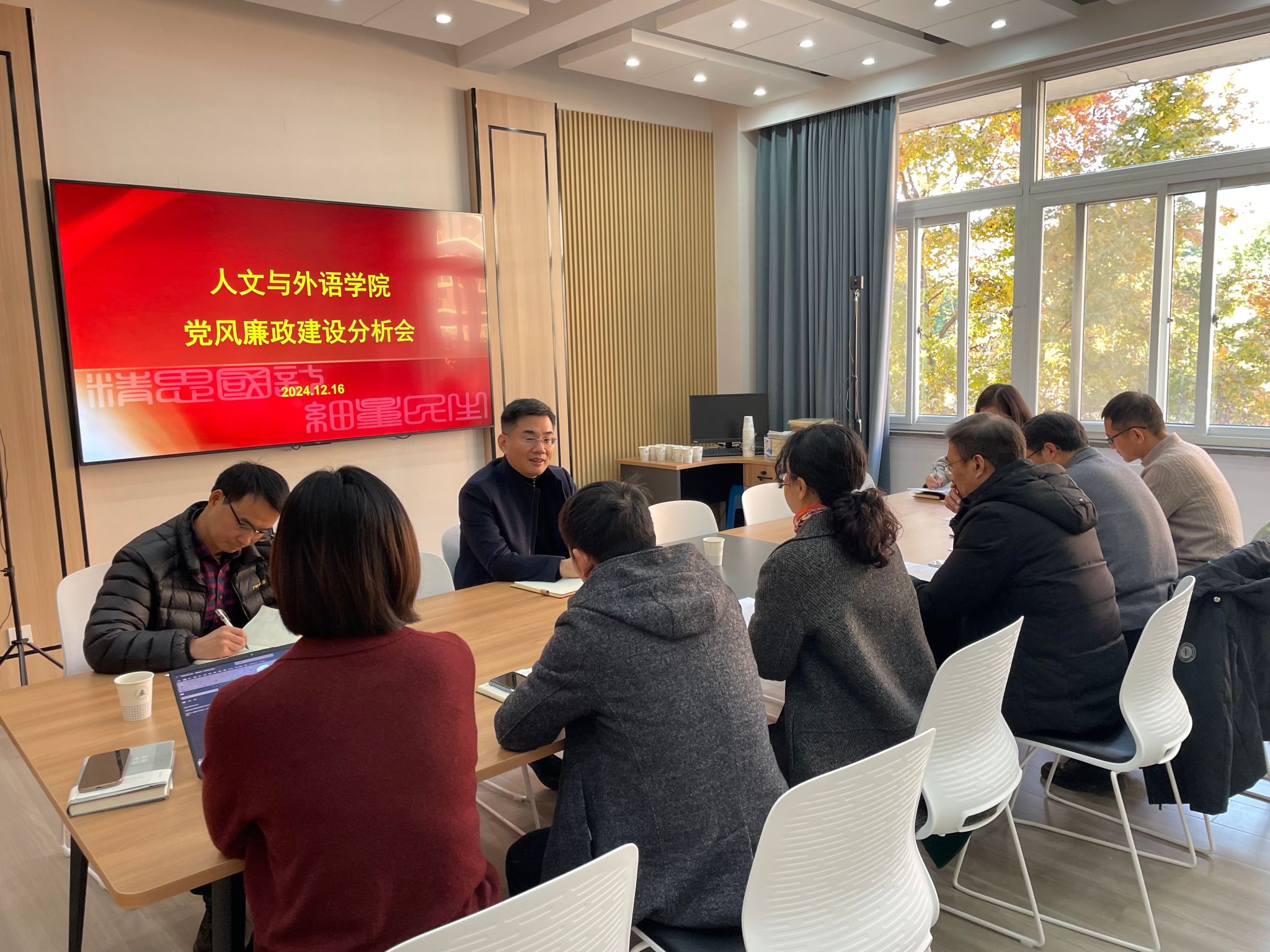 12月16日,人文与外语学院党委在格致中楼313会议室召开2024年党风廉政建设分析会。校党委委员、副校长王斌锐到会指导,人文与外语学院党政领导班子全体成员参加会议,学院党委书记赵蓓茁主持会议。