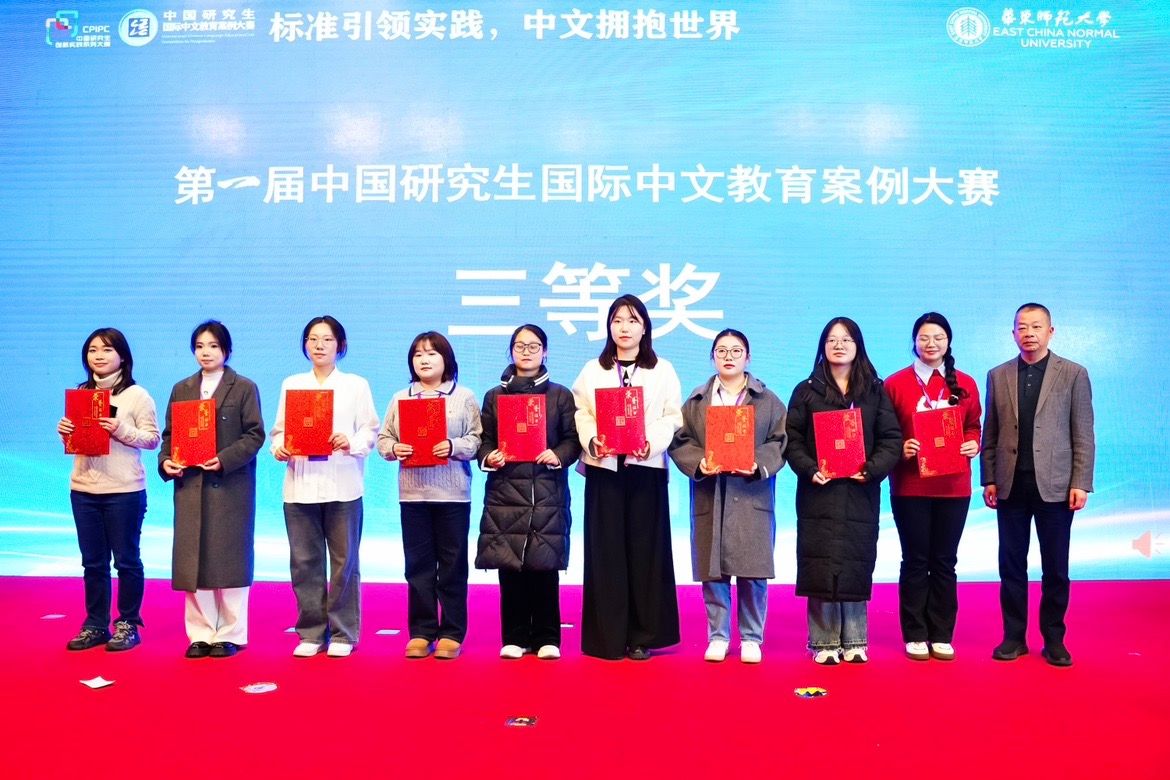 12月20日至22日,由教育部学位管理与研究生教育司指导,中国学位与研究生教育学会、中国科协青少年科技中心联合主办的第一届中国研究生国际中文教育案例大赛总决赛在华东师范大学举行。由我校人文与外语学院彭飞副教授、张璐博士作为指导教师,研究生涂子晗、杨佳瑶、李娴静、刘若雨、陶佳宁组成的“国教汪汪队”和陈亮亮、朱含露、周怡婷组成的“重生之我在团建组队”分别获得全国二等奖(并列浙江省第一名)和三等奖,为学校赢得荣誉。