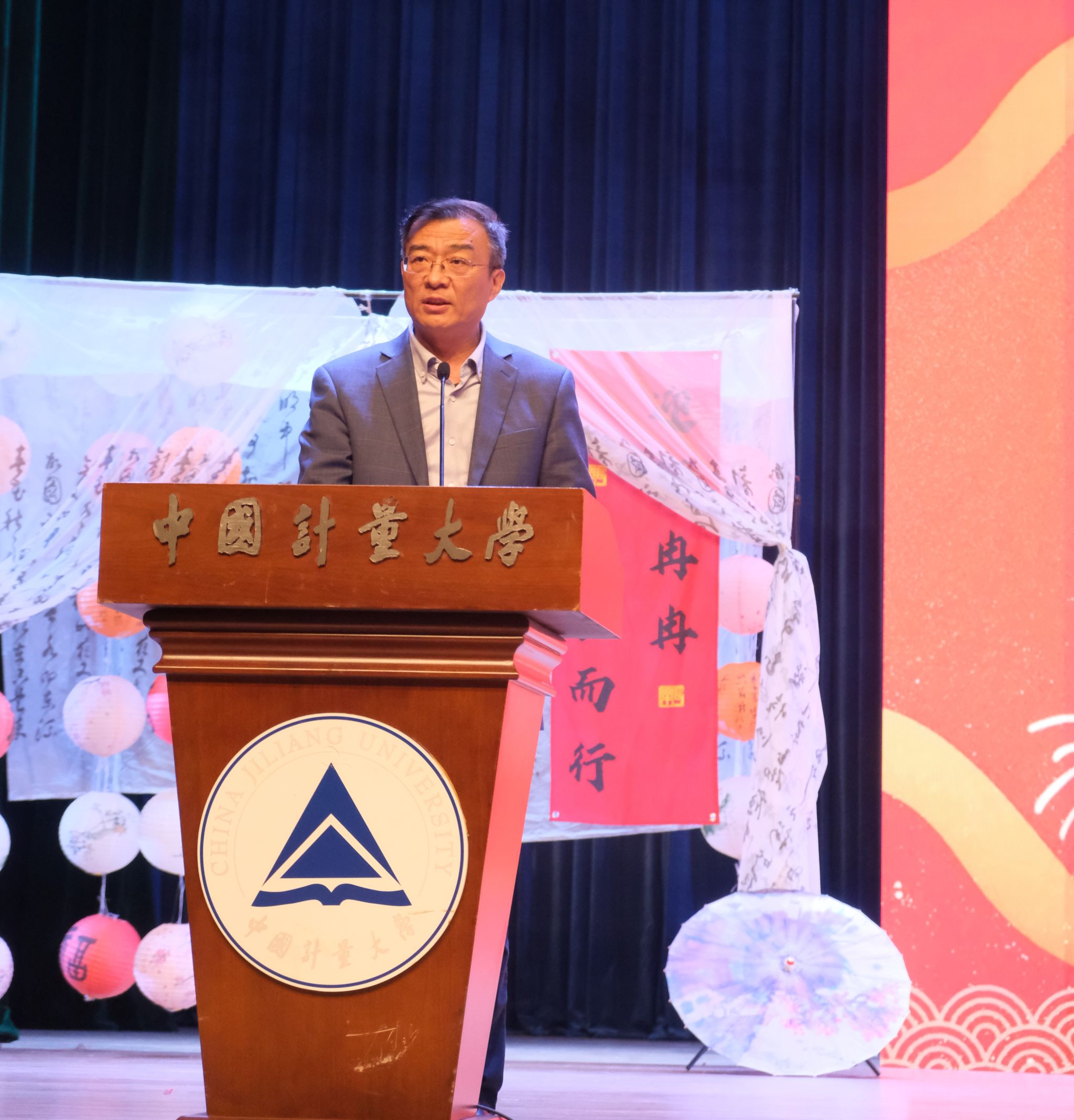 博览古今,厚德载物,勤学笃行,坚忍不拔。晚会伊始,邱高兴进行晚会致辞。他介绍了中国文化节的渊源及本届文化节举办的系列活动,并表示了充分的肯定与认可。同时,邱高兴也表达了对23级新生的欢迎和殷切希望,衷心祝愿各位新生能度过一段美好的大学生活,并预祝今晚的晚会圆满举行。