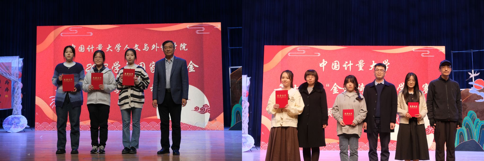 晚会上,学院领导和教师代表为在浙江省第十八届“挑战杯”项目中取得优异成绩的获奖团队、在“量秀清风”第十四届廉政文化周之 “清风雅韵” 文化作品——校园廉洁征文活动中取得优异成绩的同学以及在“金秋绮艳”文学大赛中获奖同学颁奖。