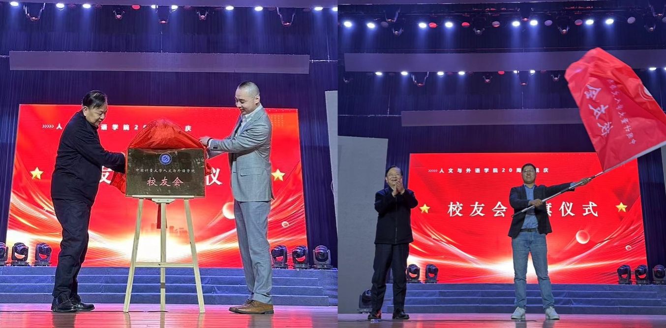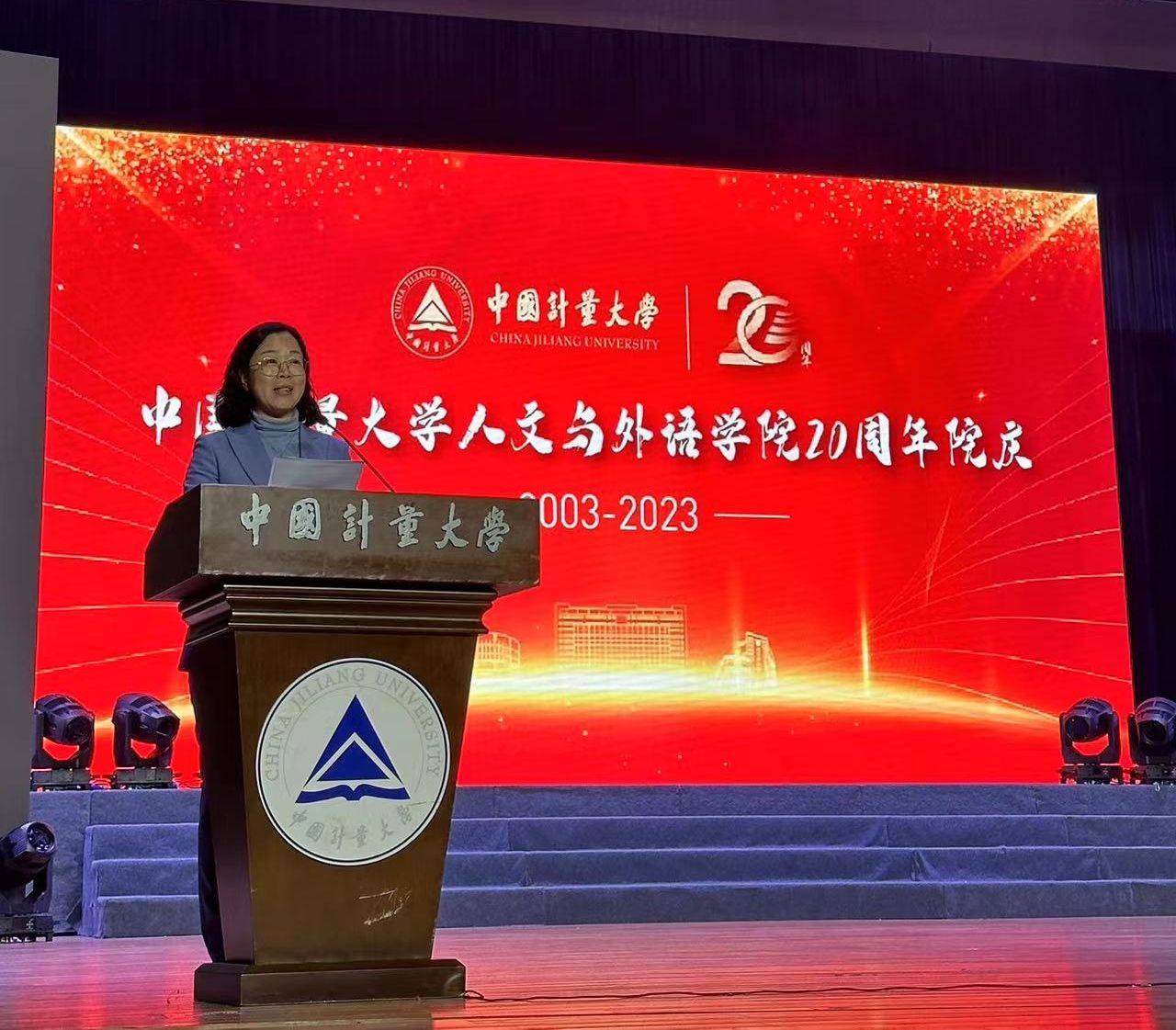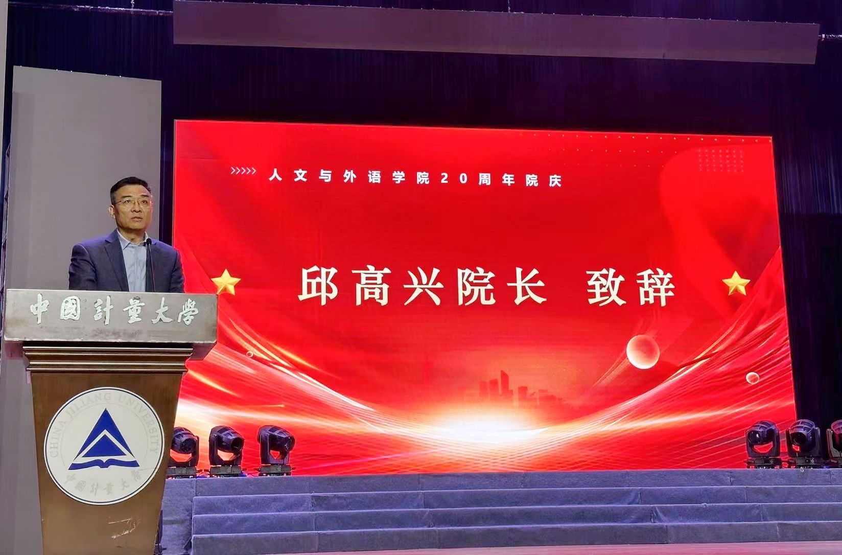 为庆祝人文与外语学院成立20周年,学院于11月18日在嘉量大会堂举行院庆典礼,举办校友会成立仪式、观看音乐舞蹈史诗“千秋计量”演出。中国计量大学校友总会会长、原中国计量大学副校长冯时林,中国计量大学对外联络处处长、校友办主任陈子良,原人文学院党委书记张新建、毕晓光,原外国语学院党委书记李元江、汪素霞、吴宏宽,学院退休教授张云鹏、胡艺珊夫妇,学院现任院长邱高兴,党委书记赵蓓茁,党委副书记金民华,副院长姚岚,各系部所、专业负责人,校友代表和在校学生参会,典礼由赵蓓茁主持。