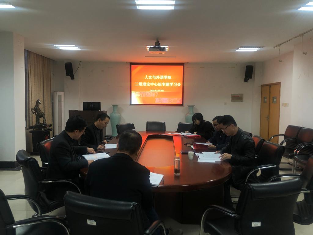 12月3日下午,人文与外语学院党委在格致南楼222会议室召开以“学习贯彻党的十九届六中全会精神”为主题的二级理论中心组专题学习会。中心组成员参加学习会,学院党委书记张徐兴主持会议。