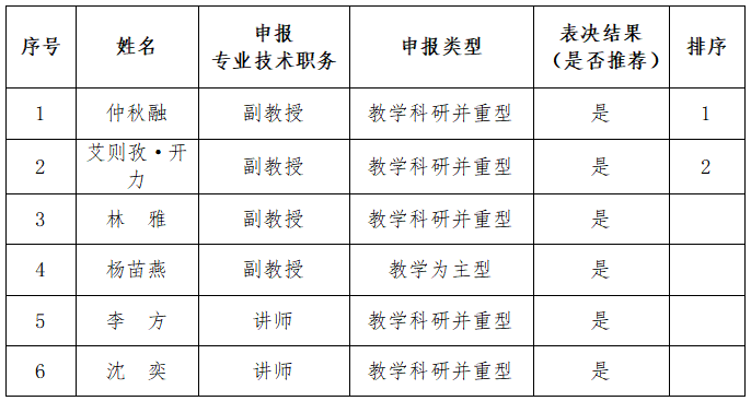 人文与外语学院2025年职称评审考核推荐组表决结果公示如下(除排序人员外,其他同类别人员均以姓氏笔画为序):